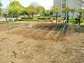 6月の初め土壌改良剤をまき、その1か月後に芝の根に切り込みを入れる