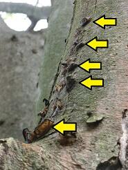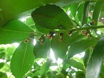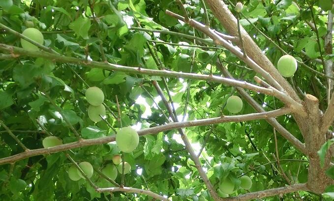 今年はプールと校舎の間の木の西側の木が実っています。