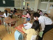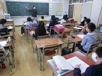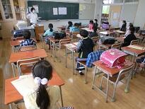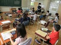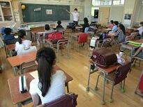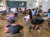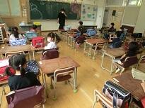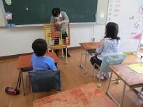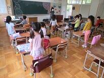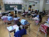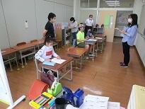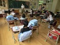 受付のあと、子どもたちは教室に入って待ちます。