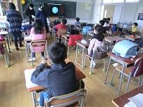 それぞれの学級を2つに分けて、2か所に分かれて休校中の課題の確認などを行いました。