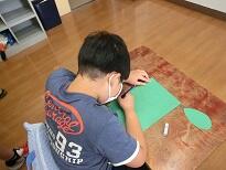 ていねいに字を書いたり、はさみや色鉛筆を使ってへびのかざりを作ったりしました。