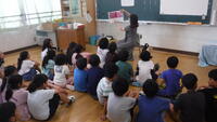 1年生の教室では、市内で活動する「おはなししゅっぽっぽっぽ」の方が、お話の語り聞かせをしてくださいました。