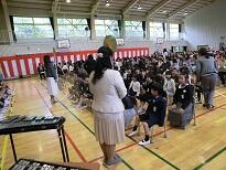 2年生が歓迎の言葉で、1年間でできるようになったことや、歌と合奏を披露しました。
