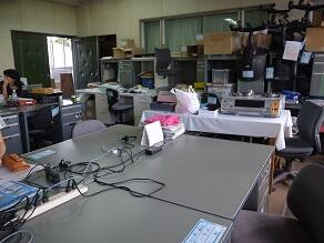 先生達の机も全部は置けません。みんなで交代で使っています。