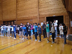 2日目は朝から雨が降っていました。             体育館はとても広いので、