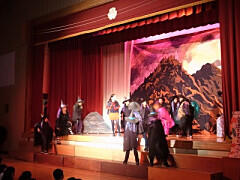 王様の命令で大きなたまごを探しに出かけます。会場いっぱいに動いて、元気な舞台でした。