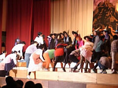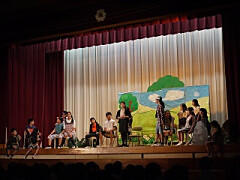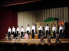 個性的な魔女や町の人々の演技。ミュージカルそのものに取り組み、ソロやかけあい、全員合唱など圧巻の舞台でした。