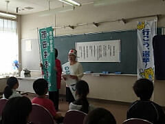 子どもたちがそれぞれの立候補者の応援演説を即興でして、