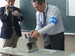 本物の選挙用紙を出す機械を使って             投票所で見たことのあるような