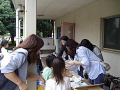 雨で芝生が使えなくなって残念。                   たくさんの方が参加してくださいました。