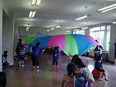 さあ、競技の前の準備体操をして・・・           パラバルーン