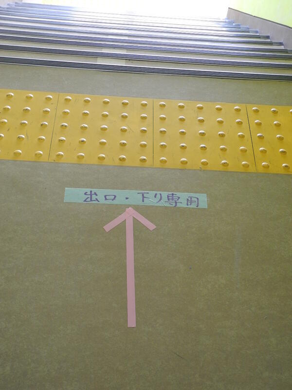 (中央階段は上り専用、両端の階段は下り専用とします)