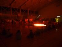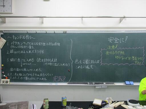 芝刈りと並行して1学級ずつ理科室でキャンドルづくりをしました。