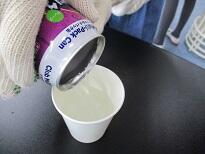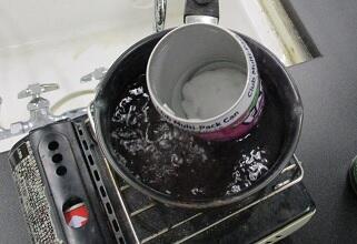 パラフィンを空き缶で湯煎(ゆせん)して溶かします。