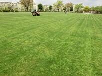 5月の運動会を中止したので、4月から深く芝を刈って冬芝を刈り込み続けています。