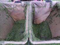 普段の方法では、刈った草がぬれているため、後ろの回収ボックスまで行かずに、