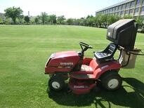 次の日に乗用型芝刈り機で吸い取る作戦をとってみました。