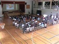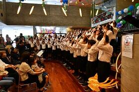 全校で学芸会で歌う「学芸会(開幕・閉幕)の歌」の練習をしました。