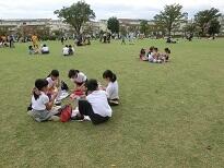 授業終了後、代表委員会の「なんちゃってギネス」、「芝生の上でお弁当」を行い、