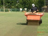 9月28日、学校公開日に4年生が芝生管理作業体験教室を行いました。
