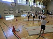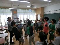 芝生が使えないので、多くの班は教室でゲームをしていました。