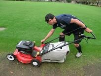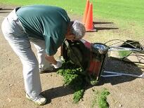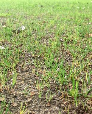 昨日の大雨の影響で芝がぬれている上に、芝の伸びが大きく、