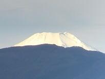 朝、屋上から観望すると白く光り輝く富士山が見えました。