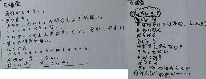 練習後は、自分たちや他の場面の人からの意見を聞き、