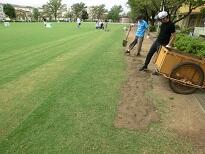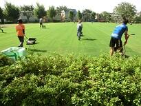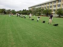 みなさんのご奉仕のおかげをもって、1年間、緑の芝生校庭を維持できています。