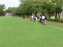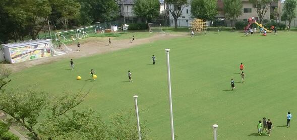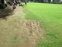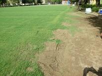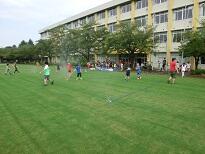 7月の日照不足で土が見えていた校庭も8月の猛暑で夏芝がよく生育し