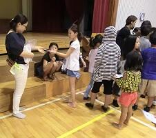 8月27日、28日は小雨が降ったため体育館で実施しました。