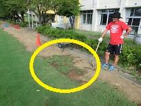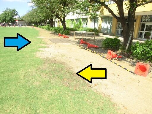 8月24日。朝、校庭を見ると、トラックの目印として埋めてあるマーカーが