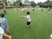 9月19日。体育委員会が全校でドッジビー集会を行いました。