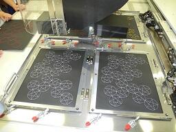 これはスポンジが入っているカーシートのような分厚い生地に模様を縫うミシンです。