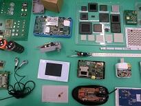 様々な電子機器に使われている基盤(左写真)を作る機械(右写真)も作っています。
