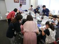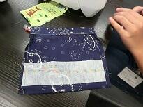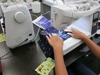 子どもたちは家庭用ミシンを使って、一人一つずつ、きんちゃく袋を作らせてもらいました。