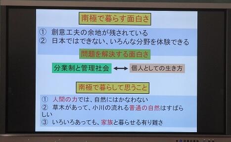 南極の様子、南極の生活、南極のエネルギー事情などの話をしていただきました。