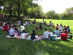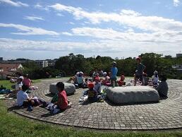 たてわり班遠足では、班ごとに、校庭、鶴牧第二公園、鶴牧東公園、鶴牧西公園へ行き、
