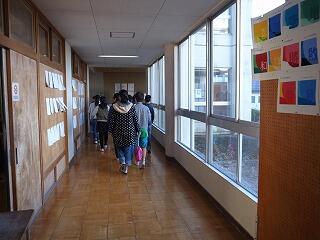 大松台小学校の6年生と一緒に鶴牧中学校の見学に行きました。