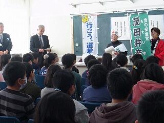 多摩市選挙管理委員会や明るい選挙推進委員会の皆様が来校し、