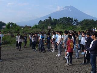 翌日の朝、富士山が良く見える河口湖畔でラジオ体操です。