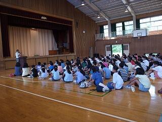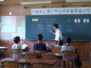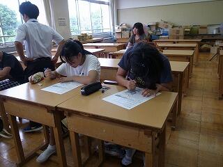 中学校の授業を体験しようと毎年夏休みに中学校の先生方がいろいろな授業をしてくれます。6年生が参加して、中学校の雰囲気を味わいました。(8月30日実施)