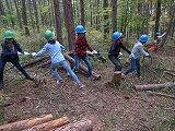 林業体験と森あそび、夕食のカレー作りと夜はお楽しみの館内きもだめしという一日でした。