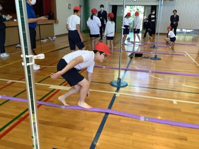 競技性とは異なる比較的簡易な運動内容の中で、コツを見付けたり、伝え合ったりという活動で体力の高め方を学習していきます。