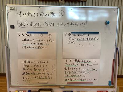 今日見つけた動きのコツや、自分自身の動きの高まりを言語化して共有しました。