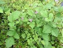 西側のなんつる農園のサツキの生垣に紫色の花が咲いているのを見付けました。