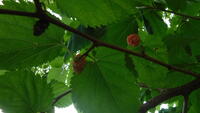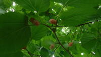 学校の敷地内に桑の木があり、現在は実が赤くなりかけています。