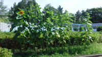 一番高いひまわりは、バスケットボールの一般使用リングと同じくらいの高さです。
