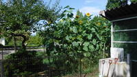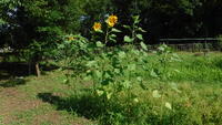 学童クラブの前にある畑に咲く、ど根性ひまわりです。