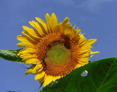 飼育小屋の前に咲く、ど根性ひまわりです。